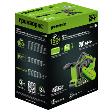 Аккумуляторная шлифовальная машина Greenworks G24BS с АКБ 2 Ач и ЗУ – это высокоэффективная ленточная шлифовальная машина, предназначенная для обработки разнообразных материалов, включая дерево и его производные, полимеры, металл и шпонированные изделия. Эргономичный корпус оснащён нескользящими вставками для уверенного и комфортного использования. Выбор абразивной ленты зависит от требуемого результата: