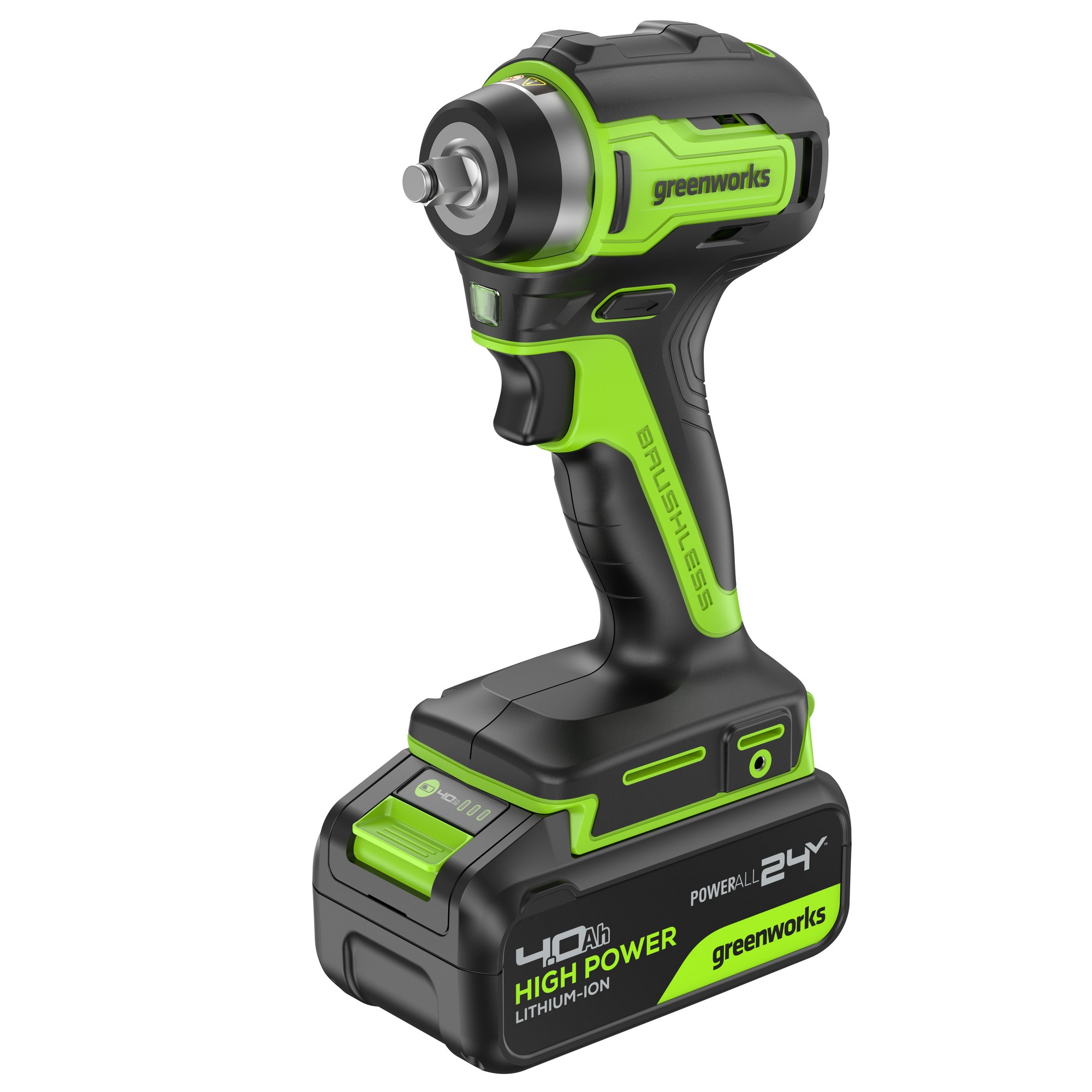Гайковерт построен на основе производительного бесщёточного двигателя DigiPro, который эффективно использует энергию аккумулятора и не теряет мощность под нагрузкой. Работой инструмента управляет Greenworks Intelligent Power – инновационная цифровая система контроля и управления батареей, инструментом и зарядным устройством обеспечивающая максимальную производительность и долгий срок службы.