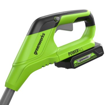 Это самый легкий и малогабаритный триммер в ассортименте Greenworks 24V. Он превосходно справляется с кошением травы на небольших территориях и в сложных для доступа зонах, где применение газонокосилки может быть проблематичным – например, на тесных тропинках или участках с неровным рельефом. В поставку включены 20 пластиковых лезвий.