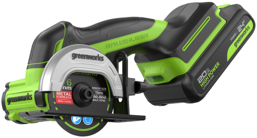 Угловая шлифмашина (болгарка) Greenworks GD24UCS 24V — болгарка из серии 24V для резки и шлифовки материалов. Имеет диаметр диска 76 мм, посадочное место 10 мм, скорость до 20000 об/мин. Резьба шпинделя М6. Оснащена бесщеточным двигателем. Компактная болгарка предназначена для обработки различных материалов, включая металл и керамогранит. С ее помощью можно осуществлять резку и шлифовку в зависимости от оснастки. Максимальный диаметр диска составляет 76 мм, а посадочное отверстие — 10 мм. Вращение достигает до 20 000 об/мин.