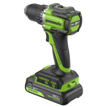 Дрель-шуруповерт аккумуляторная Greenworks DD560, 24V, бесщёточная, 30/60 Нм, 13мм, Anti-kickback, с 2 АКБ 2 Ач и ЗУ, в коробке (3708407CUC) - шуруповерт из серии 24V для сверления и закручивания крепежа.