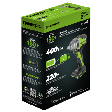 Гайковерт ударный аккумуляторный Greenworks GD24IW400 с АКБ 5 Ач и ЗУ