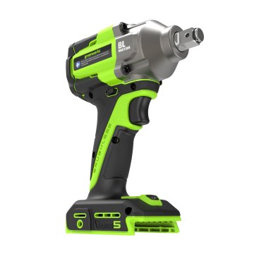 Аккумуляторный бесщеточный ударный гайковерт Greenworks IW5500 24V 3805007 (500 Нм) – это компактный инструмент из линейки Greenworks 24V, оснащенный светодиодной подсветкой рабочей области, удобной рукояткой с нескользящим покрытием и клипсой для крепления на поясе. Предельный крутящий момент достигает 500 Нм. В гайковерте используется бесщеточный мотор, а также реализованы 3 режима работы, функция Auto-Reverse и патрон размером 1/2". Данный агрегат разработан для использования в гаражных условиях, мастерских и на строительных площадках, и прекрасно подходит для закручивания и откручивания разнообразных крепежных элементов, таких как гайки, болты, винты и шурупы. Максимальный крутящий момент при затягивании составляет 500 Нм, а при ослаблении – 650 Нм.