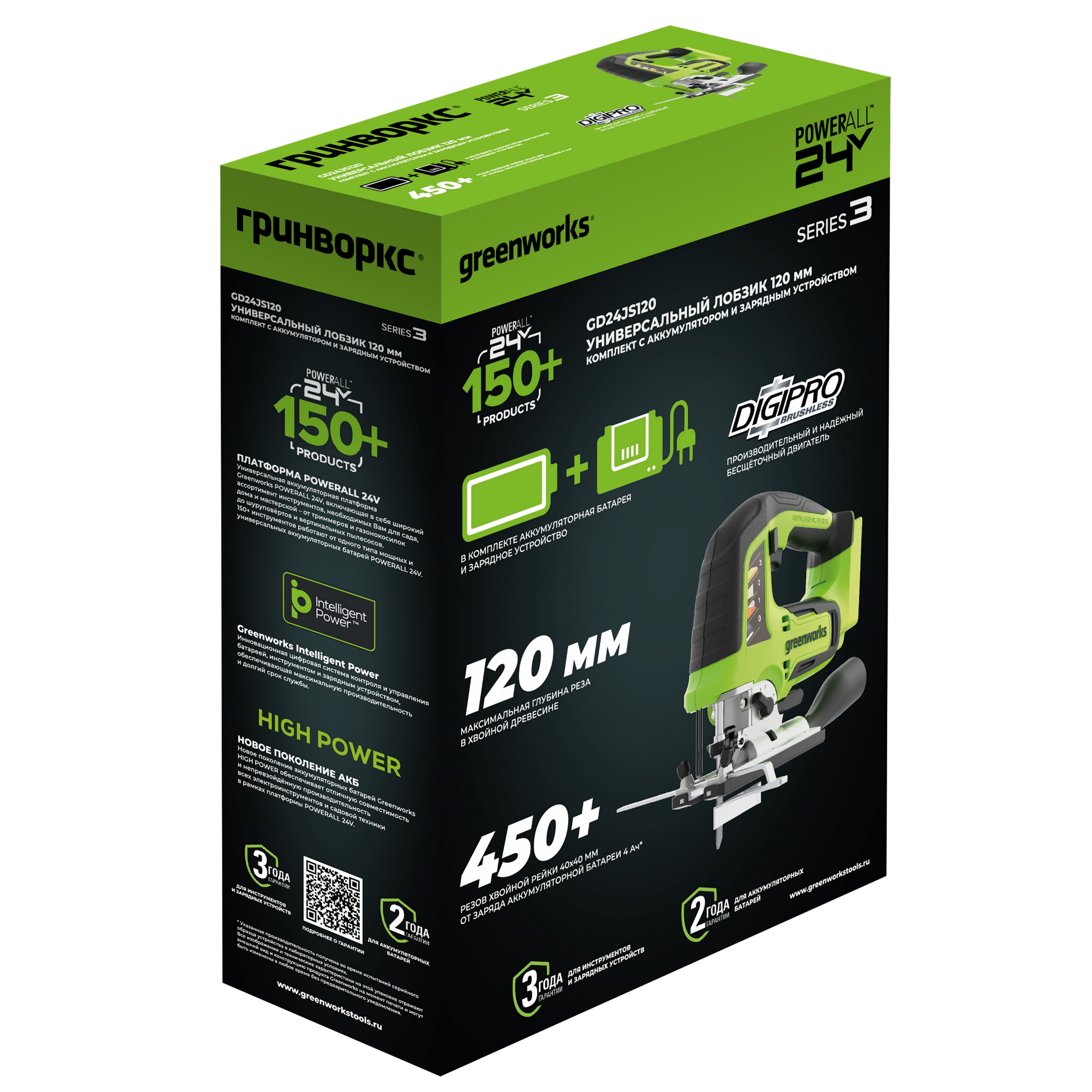 Лобзик аккумуляторный Greenworks GD24JS с АКБ 2 Ач и ЗУ