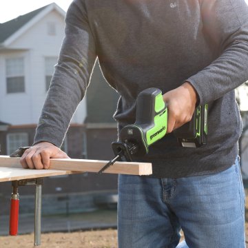 Сабельная пила Greenworks GPT-CRS-25 24V представляет собой инструмент из линейки 24V, предназначенный для резки дерева, полимеров и тонких металлических листов. Характеризуется ходом пильного полотна в 26 мм и частотой до 3000 колебаний в минуту. Оборудована мотором бесщеточной конструкции. Этот компактный инструмент позволяет разрезать различные материалы, включая дерево, пластик, тонкий металл и другие. Подвижный стальной упор позволяет осуществлять как прямые, так и врезные пропилы. Ход полотна в 26 мм, частота колебаний до 3000 в минуту и редуктор из металла обеспечивают быстрое выполнение задач. Замена пильного полотна упрощена благодаря бесключевому механизму в пилкодержателе.