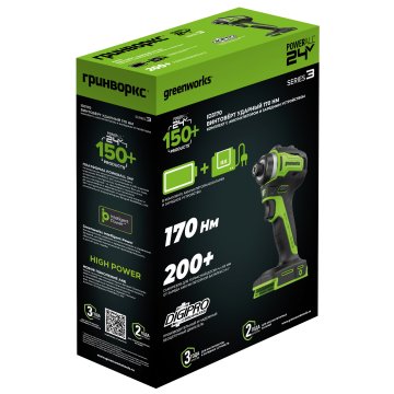 Винтоверт ударный аккумуляторный Greenworks ID3170 с 2 АКБ 2 Ач и ЗУ