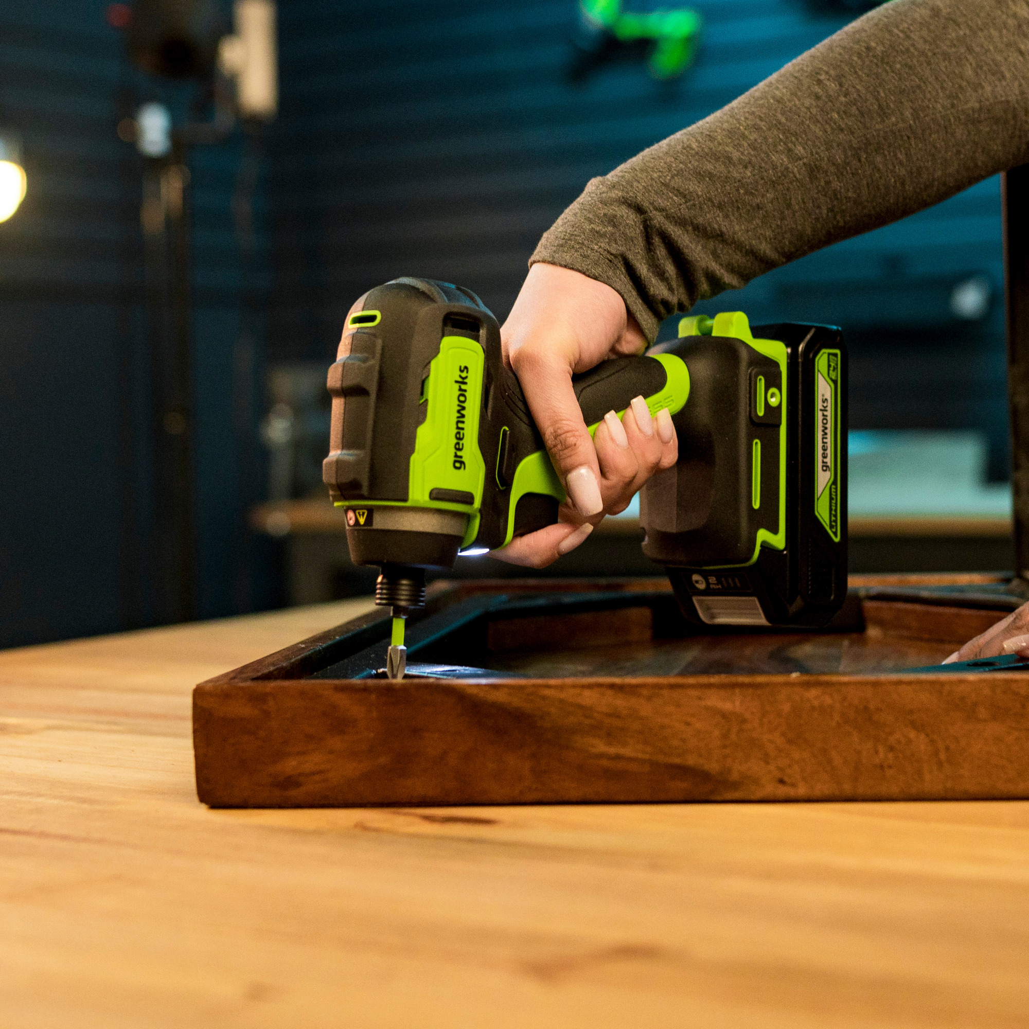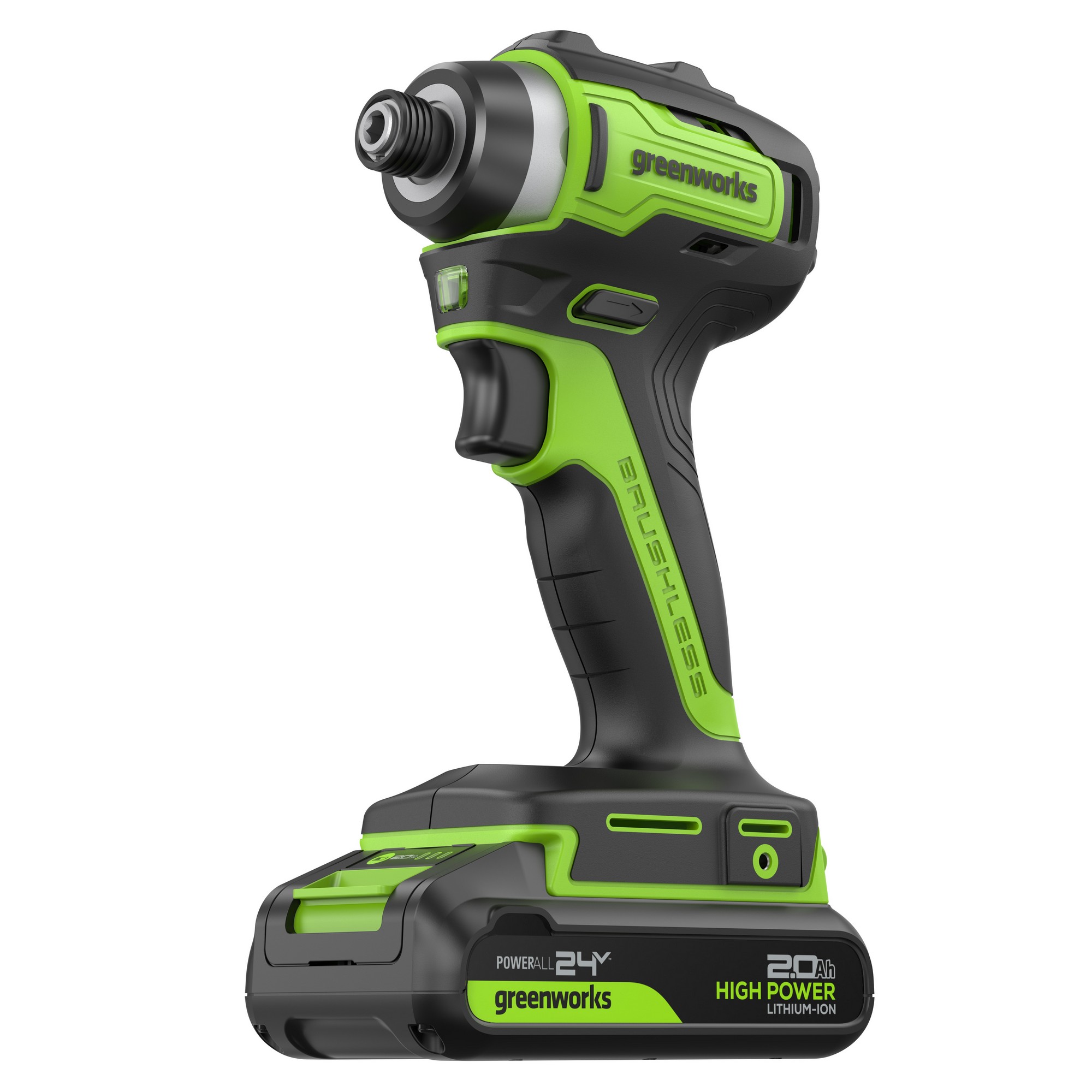 Универсальность достигается благодаря бесключевому патрону с внутренним шестигранником HEX 1/4” (6,35 мм) и механической фиксацией, гарантирующему быструю и надежную смену бит и сверл с хвостовиком 1/4”. Надежная конструкция включает металлический корпус редуктора, прочный ударный механизм и обновленный бесщеточный двигатель DigiPro с цифровым управлением и встроенной защитой от перегрузки и перегрева. Интеллектуальная система Greenworks Intelligent Power осуществляет управление аккумулятором, инструментом и зарядным устройством, обеспечивая максимальный срок службы и оптимальную производительность. Высокая производительность позволяет закрутить более 200 саморезов для террасной доски размером 4х65 мм от одного заряда аккумулятора емкостью 2 Ач. Инструмент совместим со всеми аккумуляторами платформы Greenworks POWERALL 24V.
